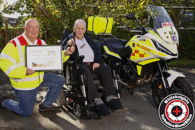 “The Whiteknights’ fleet of Blood Bikes and response cars travel in excess of 90,000 miles on Yorkshire roads each year. I have no doubt this new motorcycle will be instrumental in supporting the NHS and saving lives,” said Trevor.